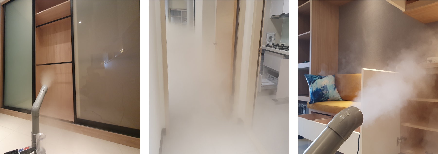 目前藥劑大多以 【水霧式】做局施作,消毒後則無須再次清洗,但每個案件使用工法不同