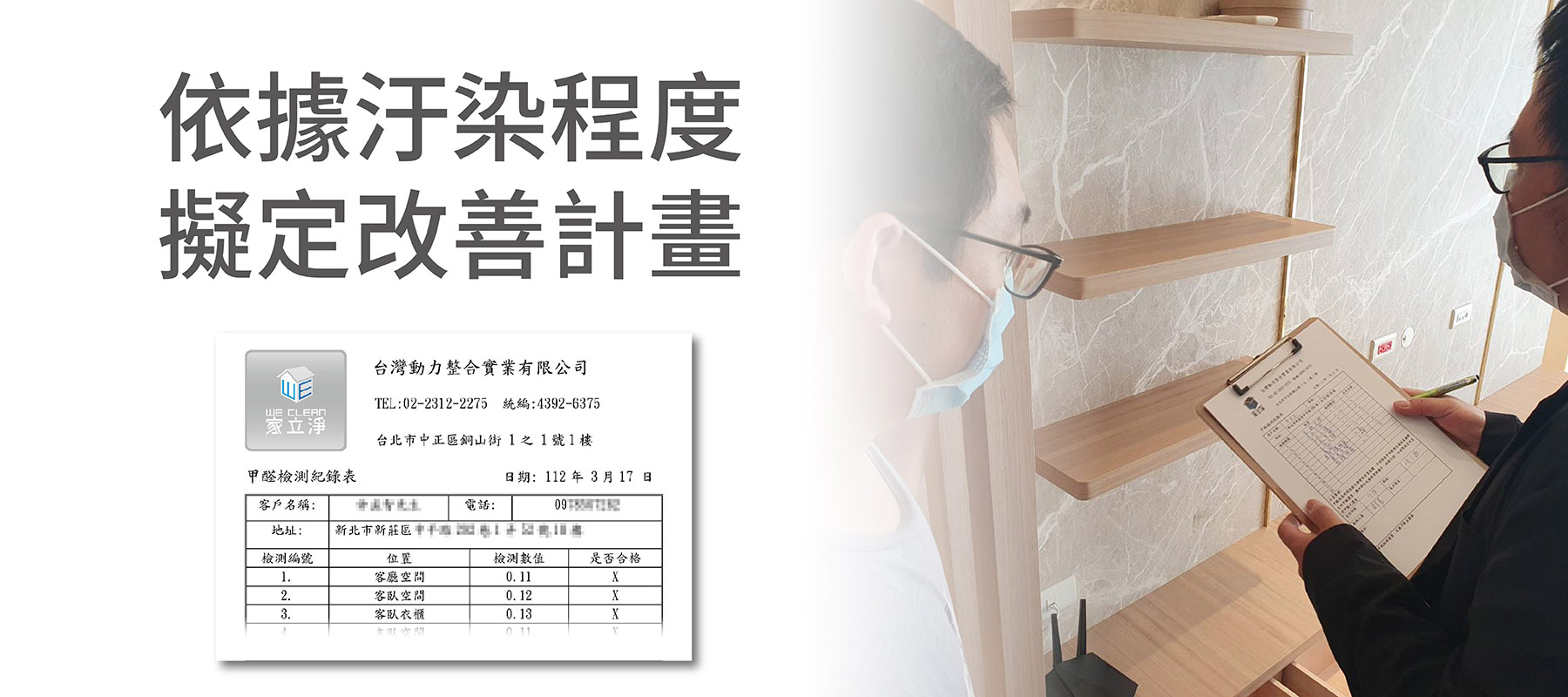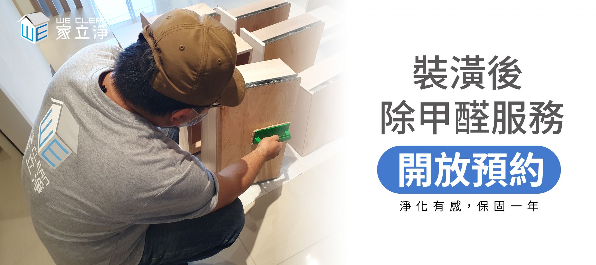 裝修細清估價時可以一起做甲醛殘留檢測評估(空間與儲櫃需封閉一小時以上),於細清後隔日施工是較適當的時間點。